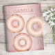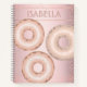 Trois doughnuts scintillants, élégants et dorés en paillettes et papier d'aluminium ainsi qu'une typographie élégante se superposent sur un fond ombré doré métallisé sur ce cahier personnalisé tendance, simple et moderne à reliure spirale. Un doughnut doré supplémentaire orne le dos. Personnalisez-le avec votre nom. 8 modèles de papier différents parmi lesquels choisir à l'intérieur. Fait une déclaration stylée chaque fois que vous l'utilisez. Un excellent cadeau pour la rentrée des classes !