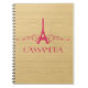Elegant and chic French Flourish Notebook featuring a faux woodgrain look background and à Eiffel Tower design in magenta adorned with cascades of stylish swirls. This girly and trendy design is easy to customize with the personalized text of your choosing. Click "Customize It" to find more personalization options.