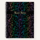 Notes de musique arc-en-ciel Portable Spiral Personnalisé. Notes musicales colorées et clefs motif en bleu vert, violet, rose et or sur le noir ou votre choix de couleur arrière - plan. Donnez à votre nouveau portable un nom pour le faire le vôtre. Ces blocs-notes font également un grand cadeau pour votre musicien préféré ou amoureux de la musique.