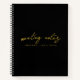 Cahier de notes de réunion professionnel simple noir et or. Conçu en écriture dorée sur fond noir avec nom et titre.