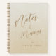 Aquarelle dorée brillante arrière - plan, avec la typographie de script or chic moderne "Notes et Musings" pour inspirer vos idées et pensées créatives, personnalisées avec votre nom sur le devant et votre monogramme avec nom sur le dos. Ajoutez vos propres informations en suivant le lien "Personnalisez ce modèle".