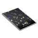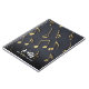 Ce design moderne et abstrait présente des notes de musique dorée cassées sur un arrière - plan noir et du texte personnalisé en écriture calligraphie et typographie manuscrite blanche. C'est un grand carnet pour les mélomanes, les professeurs de musique ou les musiciens.