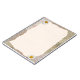 Belle page de notes vintages dans les tons beige et marron, décorée de fleurs marguerites et timbres-poste dans l'arrière - plan. Remplissez les lignes avec vos propres notes ou tout autre texte.