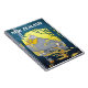 Nouvelle-Zélande, carnet en spirale. les campeurs regardent le bateau touristique qui vient de la forêt. Affiche de voyage vintage sur un carnet.