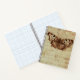 Papillon sépia affaissé sur un bloc-notes avec des chiffres et des symboles en détresse à peine lisibles. Choisissez parmi le carnet de croquis, le journal des puces, la liste de contrôle, le papier graphique, le livre de recettes ou les lignes en différentes largeurs et couleurs. Choisissez également une couleur de colonne vertébrale pour customiser davantage votre look carnet.