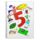 A design dedicated to the number 5! Ode to Five is inspired by the drawings junior high and high school students doodle on their notebooks and binders with pen and marker - and themed around the number 5! A big 5, a five dollar bill, a nickel, Beethoven's 5th, a hand, the French and Spanish words for 5, 5-card stud poker hand, and even James Madison - America's fifth president - all decorate this unique notebook. So celebrate the number 5 with this spectacularly fun design! Design was hand-sketched in pencil and pen and digitally colored with marker-pen. Original design by Sunny. Copyright 2012
