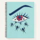 Conception étrange des yeux avec une illustration déplaisante inspirée par la sécheresse et la douleur des yeux et la détresse psychique. Comprend un oeil rouge féminin psychotique avec de longues cils et une pupille étrange avec des points blancs rappelant l'espace. Les fourmis rampent hors de l'élève, traversent l'oeil et se répandent sur le visage.