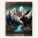 Un orignal majestueux se dresse gracieusement au bord d'une rivière sereine, encadrée de montagnes imposantes et d'une lune pleine et brillante, dégageant un esprit sauvage tranquille.