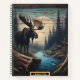 Un orignal serein est installé au bord d'une rivière sous la faible lumière du crépuscule, entouré de grands arbres et d'un paysage paisible.