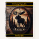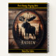 Une magnifique sculpture sur bois d'orignal pose majestueusement sur fond d'arbres, mettant en valeur la beauté et l'artisanat de la nature. REMARQUE Pour modifier des couleurs de texte ou de bordure, utilisez l'outil Modifier à l'aide de la conception