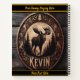 Une plaque en bois magnifiquement sculptée présente un orignal majestueux, entouré de motifs complexes et personnalisé avec le nom Kevin. REMARQUE Pour modifier des couleurs de texte ou de bordure, utilisez l'outil Modifier à l'aide de la conception