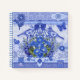 Un Carnet avec un imprimé d'oiseaux de porcelaine antiques, cage d'oiseaux avec des fleurs bleues et des papillons contre un arrière - plan de dentelle antique. Il est très bien avec Blue Porcelain Teacup et Flowers carnet, planificateur ou journal.