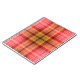 Orange and coral pink tartan design. Colors found within this tartan like pattern : orange, shades of pink, olive green, yellow, and deep burgundy.