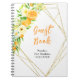 This fun and whimsical birthday party guest book features watercolor oranges, daisies and foliage on a gold geometric frame. The text combines handwritten script and serif fonts for a stylish and modern look. This is perfect for a summer rustic birthday party.