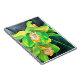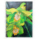 Illustration originale d'une peinture à l'aquarelle de Sacha Grossel représentant des fleurs d'orchidées vertes et jaunes dans un style botanique peint. Cette oeuvre originale de style pop art floral spécial est vibrante et colorée. Lime vert et jaune citron sur un arrière - plan texturé vert foncé.