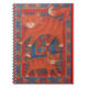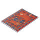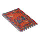 Un chat et chaton à la marmelade sur un tapis rouge, bleu et jaune à thème de poisson. Ordinateur portable avec un design personnalisable pour vous permettre de personnaliser avec votre propre texte, photos et idées. Image créée à partir d'un dessin original au crayon coloré.