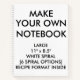 Carnet d'images RECEPE personnalisé avec SPIRAL BLANC (6 options de couleur) Modèle blanc - 8,5 po x 8,5 po (60 feuilles, 120 pages). Concevez, créez, créez les vôtres. Votre photo, image, texte, logo, graphiques en couleurs plastifiées, d'un bout à l'autre du bloc-notes, sur les couvertures avant et arrière du bloc-notes.  papier lisse en texte durable, couvercles avant et arrière laminés, conforme CPSIA. OPTIONS DE FORME : Forme rectangulaire, Carré ou Coeur. OPTIONS DE COULEUR SPIRALE : Noir, Blanc, Gris, Rouge, Bleu ou Vert. OPTIONS DE CONCEPTION DE PAGE : Roulement général, Roulement collégial, Esquisse, Pratique, Esquisse/Pratique, Esquisse/Roulement étendu, Graphique ou Recette (En forme de coeur : Lined ou Plain seulement). Le meilleur pour l'école, le collège, la cuisine, le bureau, les notes et les idées, et pour les cadeaux d'anniversaire et de Noël.