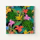 Belle image de jungle fleurie aux couleurs vives. Personnalisez avec votre/destinataire initial dans un cadre carré central.