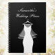 Élégant carnet en spirale wedding planner ou journal avec design de robe mariage. Mignonne organisateur personnalisé noir et blanc pour couple engagé se marier / future mariée et marié planifier leur fête de mariage. Élégante typographie de script avec robe mariage et voile sur une illustration de cintre. Faites votre propre petit carnet pratique pour votre liste, budget, idées, coûts, notes, plans, rêves, etc. Peut également servir de livre d'or à la salle mariage. Il suffit de changer le libellé.