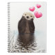 Un carnet en spirale avec l'image d'une loutre mignonne avec des coeurs flottant vers le haut. Les coeurs sont roses et somptueux avec une brillante réflexion.Cette loutre est très adorable avec ses pattes reposant sous son petit menton furieux. Sa fourrure a l'air mouillée depuis qu'il est dans l'eau.