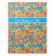 Un joli Carnet Spiral ou Journal, avec un joyeux motif de fleurs rouges, orange et jaunes sur un arrière - plan turquoise, d'un collage de papier peint à la main par Judy Adamson.