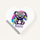Un mignon ours en koala caricature assis devant un carnet en papier en forme de coeur personnalisé en arc-en-ciel.