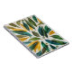 Folhas de vários tipos feitas em aquarela, espalhadas umas das outras, em cores verdes e amareladas, simulando a chegada do outono.