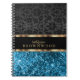 Carnet Paillettes bleues et damas noir