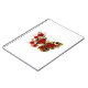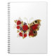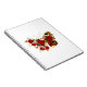 Papillon de fleurs aux yeux de paon rouge à aile texturée rouge, décoré de composition de roses rouges, artistiquement peints avec des tiges dorées et feuilles sur arrière - plan blanc.