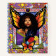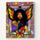 Fée afro-américaine avec ailes de papillon Monarque en violet. Design géométrique fleuri et coloré et verre taché Le noeud celtique de la fée.