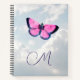 Papillon vintage rose - conception graphique antique dans l'ambiance printemps / été. Il est accompagné d'un ciel bleu avec des nuages légers en arrière-plan. De la boutique de lumirala. Vous pouvez maintenant personnaliser ce cahier spiralé féminin avec votre monogramme / détails personnels. Conception pour le devant et le dos. Idéal pour les adolescentes rêveuses / âmes romantiques.