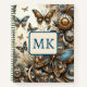 Un joli carnet personnalisé en métal avec des papillons et des engrenages steampunk monogrammés.