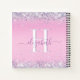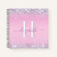 Un bloc-notes monogrammé avec des confettis en faux parties scintillant violet et argent brillant, le long du haut et du bas contre un arrière - plan rose. Ajoutez votre initiale monogramme et votre nom dans un script mauve tendance avec des swashes.