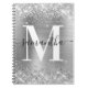 Créez votre propre nom personnalisé et un carnet vierge monogrammé pour elle. L'arrière - plan présente un graphique en faux film gris argenté à l'ombre avec une parties scintillant argentée faux brillant. Customisez la calligraphie de style contemporain noir et blanc et le monogramme moderne minimaliste.