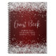 Créez votre propre livre d'invités de célébration d'anniversaire décoré couverture blanche carnet pour sa journée spéciale. Parties scintillant d'argent avec un maroon rouge foncé ombre arrière - plan. Les faux étincelles et la parties scintillant sont des graphiques numériques qui s'impriment comme une photo. Customisez le style de police, la taille ou la couleur de la calligraphie "Livre d'Invité" pour correspondre. Supprimez le dégradé si vous préférez un arrière - plan de couleur solide.