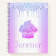 Un cupcake bleu violet scintillant, chic, rose, une typographie élégante et des gouttes de parties scintillant recouvrent un arrière - plan faux métallique bleu violet foncé sur ce carnet en spirale, moderne, simple et tendance. D'autres gouttes de parties scintillant bleu violet ornent le dos. Personnalisez avec votre nom. 8 différents designs de papier intérieur à choisir. Fait une déclaration élégante chaque fois que vous l'utilisez. Un grand cadeau pour le retour à l'école ! Entrez simplement le nom de votre choix, et vous pouvez facilement personnaliser ce nom personnalisé carnet spiral. S'il vous plaît, envoyez-moi un message avec toute question ou demande.