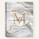 Moderne Blanc Or Agate Gemstone Marbre Géode Élégant élégant Monogramme École Bureau Script Nom Carnet