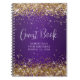 Créez votre propre livre d'invités de célébration d'anniversaire décoré couverture blanche carnet pour sa journée spéciale. Faux parties scintillant d'or avec un violet foncé royal sombre arrière - plan. Les étincelles et la parties scintillant sont des graphiques numériques qui s'impriment comme une photo. Customisez le style de police, la taille ou la couleur de la calligraphie "Livre d'Invité" pour correspondre. Supprimez le dégradé si vous préférez un arrière - plan de couleur solide.