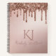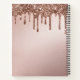 Ce carnet élégant et personnalisé est doté d'un arrière - plan glamour, girly, rose de couleur or avec une texture de papier peint. Les paillettes de parties scintillant se déversent sur la partie supérieure. Les initiales du monogramme sont placées sous la parties scintillant, suivies d'un exemple de nom imprimé dans une police de script élégante. L'arrière du carnet est muni d'un arrière - plan rose en or assorti avec des gouttes de parties scintillant.