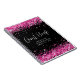 Créez votre propre livre d'invités de célébration d'anniversaire décoré couverture blanche carnet pour sa journée spéciale. Faux parties scintillant rose chaud sur un arrière - plan de couleur noire solide personnalisable. Les faux étincelles et la parties scintillant sont des graphiques numériques qui s'impriment comme une photo. Customisez le style de police, la taille ou la couleur de la calligraphie "Livre d'Invité" pour correspondre.