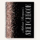 Elégant sketchbook minimaliste avec un arrière - plan noir avec un modèle de nom personnalisé blanc dans un script de calligraphie féminine. Une bordure de parties scintillant rose or rose ajoute une touche de girly.