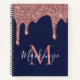 Parties scintillant Rose Gold Sparkle Drips Carnet Monogram avec la mode faux rose/rose parties scintillant or goutte sur un arrière - plan bleu marine chic avec votre monogramme et nom personnalisés. Conçu par Cèdre et String. Pour personnaliser davantage, cliquez sur le lien "customiser plus loin" et utilisez l'outil de conception pour modifier la conception. Si vous avez besoin d'aide ou d'articles correspondants, veuillez nous contacter à cedarandstring@gmail.com,