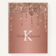 Profitez de cet élégant design de journal de gratitude avec votre texte et monogramme ou initial avec chic et brillant rose parties scintillant en cuivre gouttes sur un arrière - plan rose en feuille d'or.