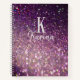 Simple unique moderne violet faux argent parties scintillant scintillante monogrammed et nom carnet de livre de recettes personnalisées.
