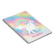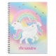 Ce carnet personnalisé magique et enchanteur dispose d'un arrière - plan pastel en dégradé arc-en-ciel. Un arc-en-ciel design Parties scintillant est placé juste derrière une licorne de style parties scintillant mignonne. Plusieurs étoiles brillantes de parties scintillant dorée sont placées autour de l'arc-en-ciel et de l'image de licorne. La partie inférieure présente des nuages blancs avec un exemple de nom personnalisé imprimé en rose.