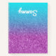 Créez votre propre carnet personnalisé. Le design et le nom de la couverture à l'ombre d'Aqua sont à l'envers pour les gauches. Un écrivain gaucher appréciera le graphisme et le papier pointillé. Parties scintillant violette violette brillante photo.