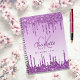 Un dégradé violet violet arrière - plan avec des gouttes de parties scintillant violette profonde, la peinture goutte à goutte. Personnalisez et ajoutez vos initiales monographiques, un nom et un titre. Le nom est écrit en violet avec un script de style moderne écrit à la main. Parfait pour les affaires, l'école, le journal, le travail ou la vie personnelle/familiale.