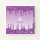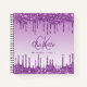 Un dégradé violet violet arrière - plan avec des gouttes de parties scintillant violette profonde, la peinture goutte à goutte. Personnalisez et ajoutez vos initiales monographiques, un nom et un titre. Le nom est écrit en violet avec un script de style moderne écrit à la main. Parfait pour les affaires, l'école, le journal, le travail ou la vie personnelle/familiale.