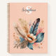 Un carnet élégant avec un motif naturel de plumes, de feuilles et une fleur couleur abricot, sur un arrière - plan rose pêche. Le joli carnet peut être personnalisé avec votre initiale et nom comme un monogramme élégant.