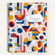 Ce design abstrait géométrique d'inspiration Memphis apporte une touche moderne au style du milieu du siècle avec ses formes ludiques et sa palette audacieuse de bleu marine, rouge et or sur un arrière - plan blanc immaculé. La composition dynamique reflète l'essence des motifs modernes du milieu du siècle. Parfait pour le retour à l'école, la collecte de recettes familiales ou même le portfolio d'artistes, ce carnet polyvalent peut être facilement personnalisé pour convenir à votre style unique en utilisant le modèle fourni. Essayez l'option de transfert pratique de Zazzle ou recherchez ID1067 pour voir d'autres motifs et produits dans cet ensemble de design. Note : motif adapté du contenu génératif.